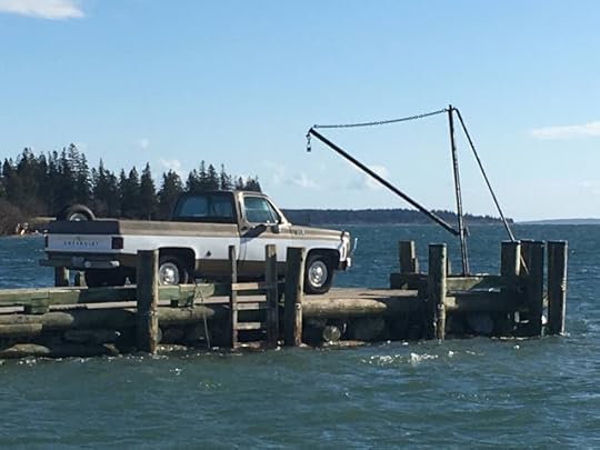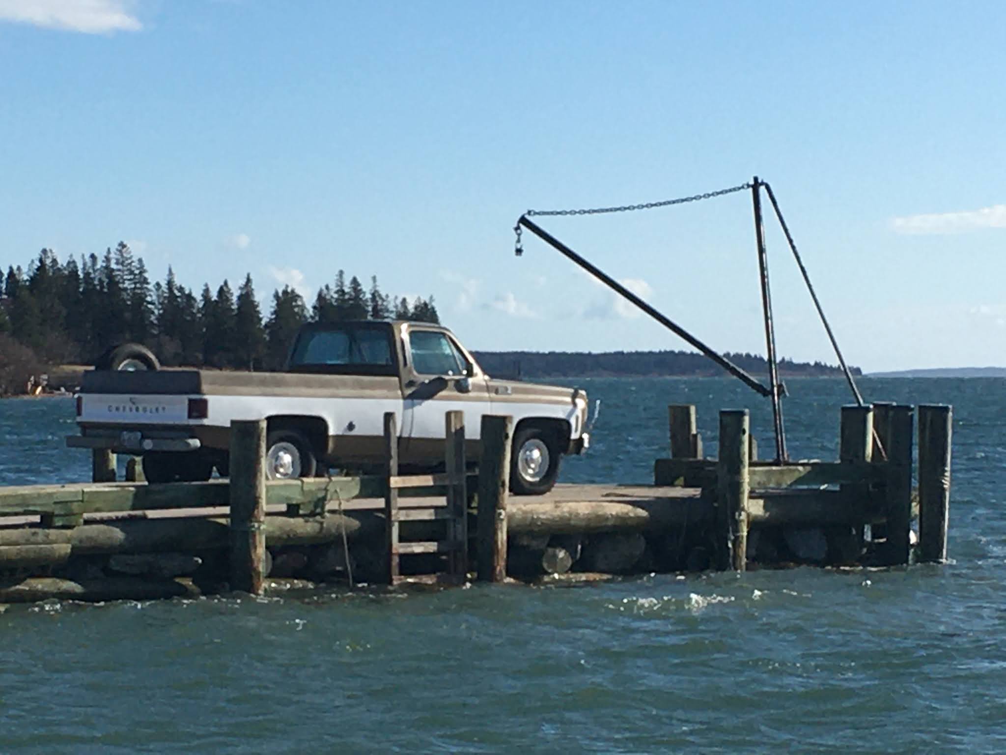 High tide at Naskeag. Lobstering mostly done, except way offshore. Several people are dragging and/or diving for scallops. More about the truck here.