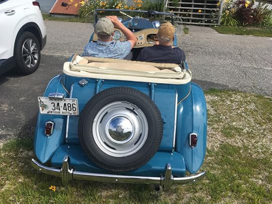 Roger Angell, author, editor, baseball aficionado and Brooklin person, turns 100 this month and Maine's Governor Janet Mills showed up for a socially-distanced celebration outside Friend Memorial Library which included a celebratory drive-by of old cars and trucks. Not precise on the year of this TD, early 50s no doubt. Her's a 1954 MG-TD we posted from Italy a while back, and a '52 TD up in Montreal.