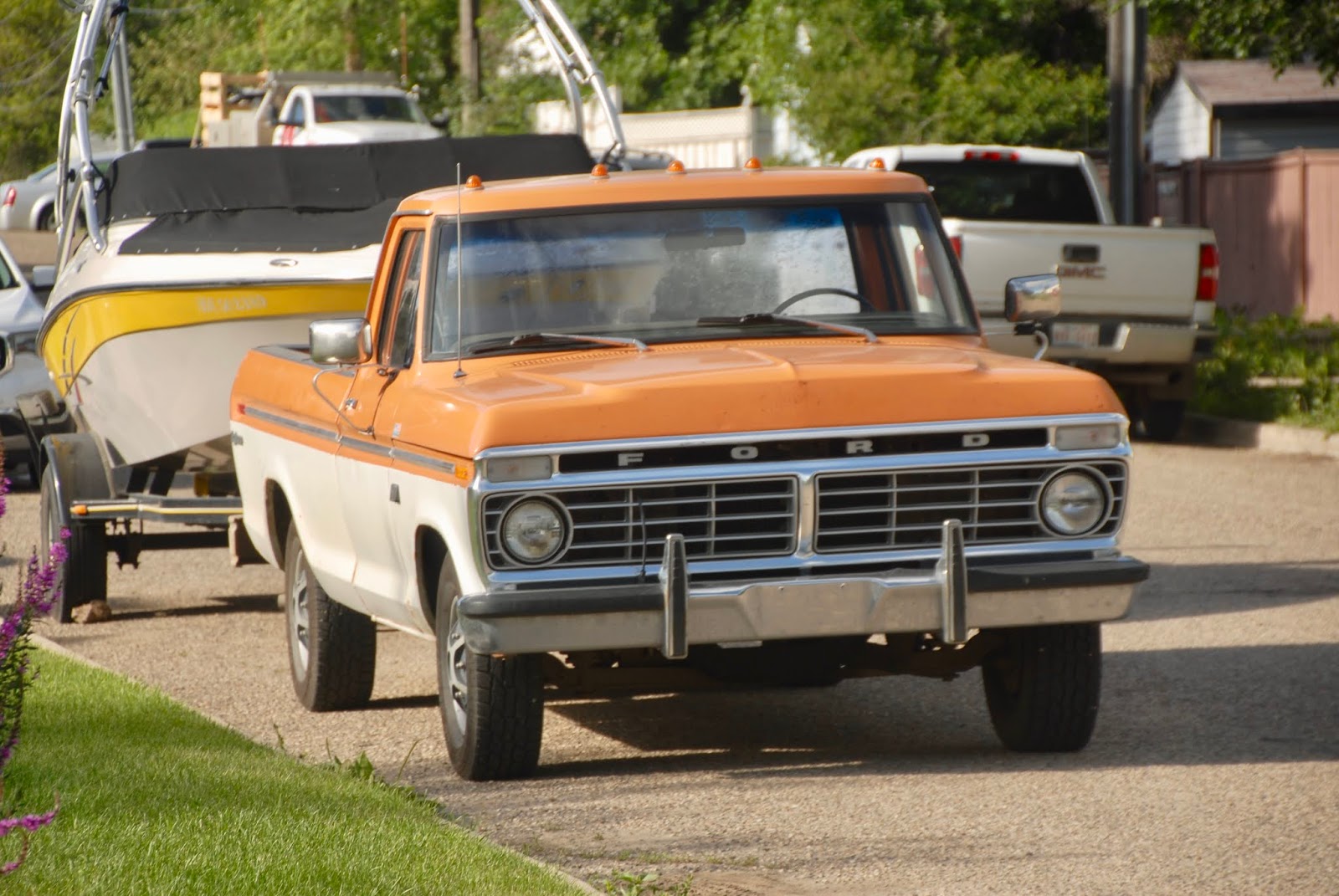 from Alex Emond: Here's a good looking Ford, ready to tow a boat, maybe up to Lake Diefenbaker, or Lac Pelletier . This is Swift Curren, Saskatchewan and this truck seems pretty much original I could be off by a year or two but my guess is 1969. Cheers , AlexAL: If you try F100 in our search widget you'll get a bunch more trucks, like this '68 in West Texas.