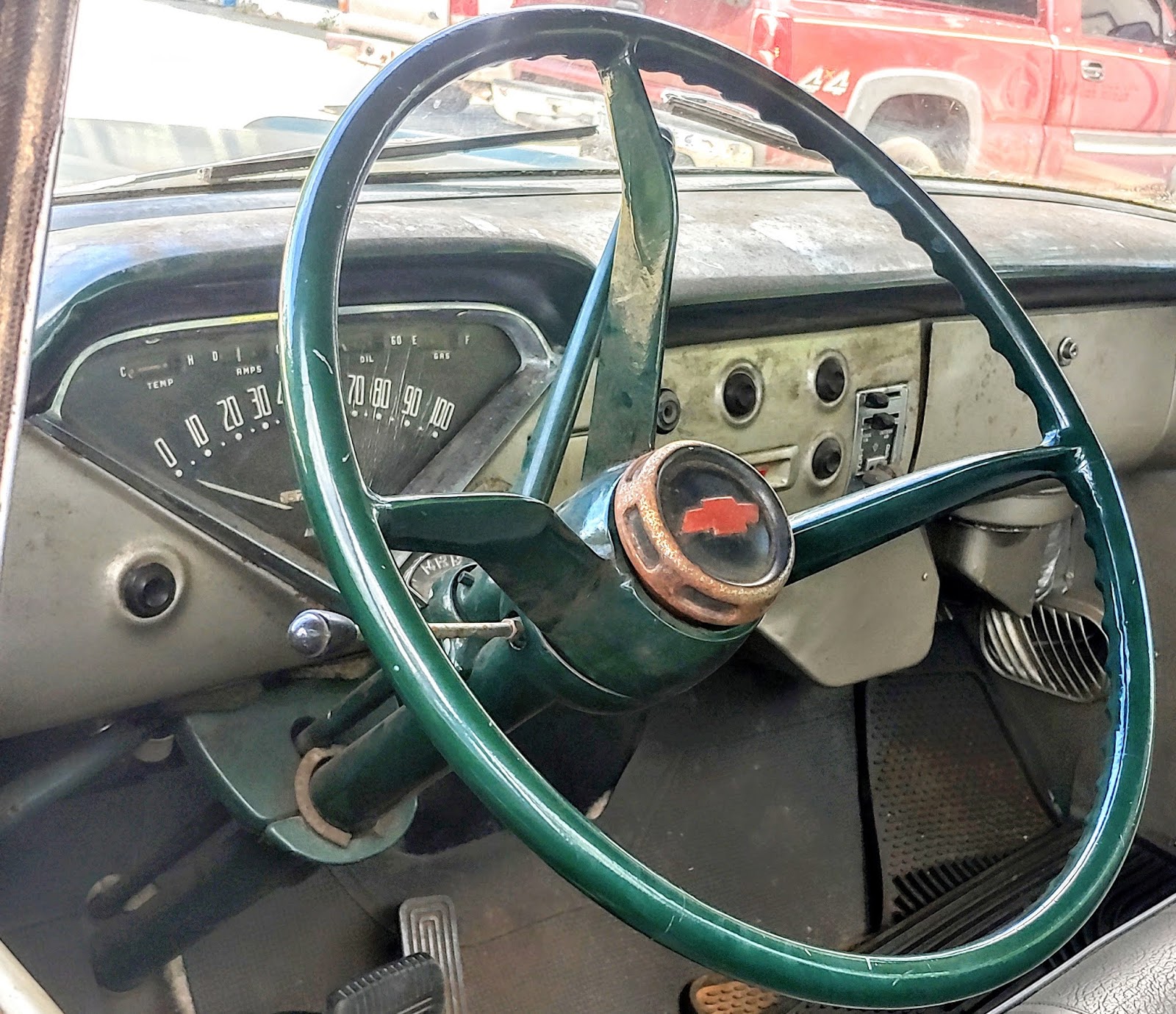 from Greg Phillips: "A peach of a truck. I tried to capture some of the design features that made this a great truck. How many can you find? All are long gone now resulting in the modern truck, in most cases, being no more than a street legal shopping cart. Last dispatch for a while from Florida's Forgotton Coast. This gem was in Eastpoint, FL, on Apalachicola Bay; your typical Florida fishing village with a Covid-19 problem."AL: if you try 3100 in our search widget you'll see a bunch more Task Force-era trucks, including this 1958. Searching for Apache turns up several more, like this one--where else--Saskatchewan.