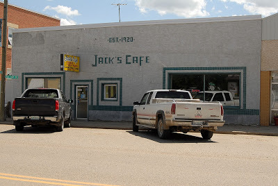 How to find a great highway cafe? Sometimes you just get lucky. The sun isn't up yet but a row of pickups and grain trucks are already angle-parked outside Jack's Café ("Since 1920") at East End.