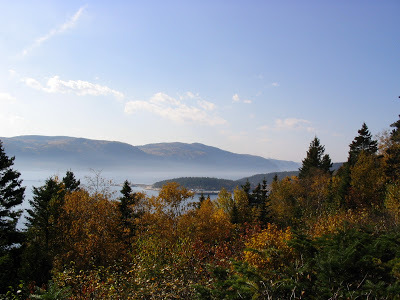 My wife likes highways but prefers frequent-flyer miles. I grew up in Montreal, live in Southern California. I'm headed home after a stay at the Fine Arts Work Center in Provincetown, Massachusetts, where I’ve been working on a novel about a boy coming out of Famine Ireland in the 1840s. It is late October and I’m invited to spend the weekend with friends at Tadoussac, Quebec. I have not been north around Lake Superior in a decade. And I miss the austere light of Saskatchewan in autumn. So I've decided to drive home across Canada.... The plan is to aim for the Queen Charlotte Islands. I can see the trip really ending there. Can't go further west in Canada. Then I'll head for California I've left it kind of late in the season, though. Anxious about snow in the mountains. ...Driving up and down the St John Valley on the Maine side, peering across the river at Canada. Small, rough hills spattered with autumn color. I feel reluctant to cross. Like a stranger standing on the porch of the house where he grew up, wary of touching the doorbell. This is disconcerting. I have never felt American. If I don't feel like I'm coming home here, crossing this border, I'm never going to.French Canadian names--Martin, Lavoie, Plourde--on all mailboxes along the last few miles of US 1. The kid at the Gulf station says the local dialect is Valley French. Across the river, "they speak more Parisian." ...Past L'Universite de Maine á Fort-Kent I get caught in Saturday-evening-Mass traffic outside Eglise St-Louis, then finally cross the river at Edmundston. The officer at Canada Customs says Rosette's in Frenchville, Maine is the best place to eat. ...Rosette’s is packed with families, mémère, pépère, toute la gang chowing down on broiled scallops, chowder, steaks, blueberry pie. Everyone talks fast and twangy. Sentences that start French and end English, or the other way around.