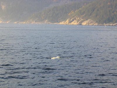 The Europeans come to see les baleines puis les autochtones. Whales and Indians. Beluga are scarce this week, but here's one.