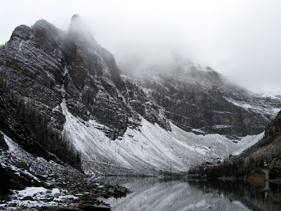 I wake up on my third day in Banff and can't see through snow to my car. Decide all of a sudden that I'm heading south.