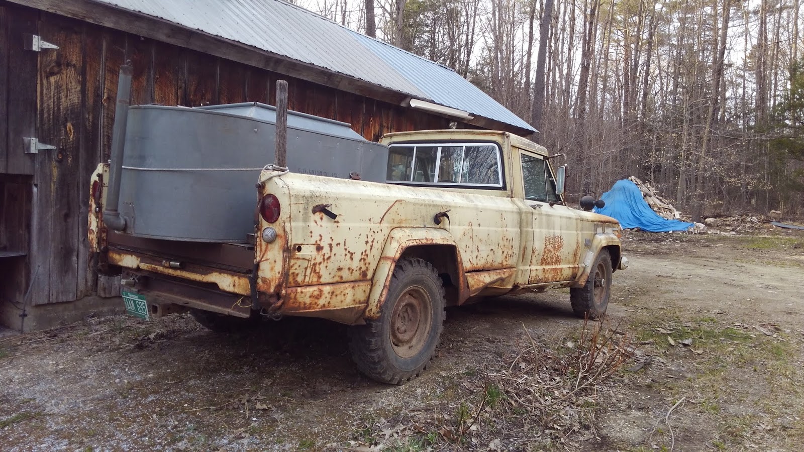 from Reid Cunningham: "At a sugar shack near Bromley VT, an old warhorse still being used to collect maple sap. The last registration sticker was 2010, but the bed holds a sap tank, collection buckets and other tools of the trade."