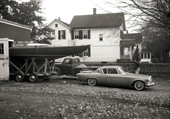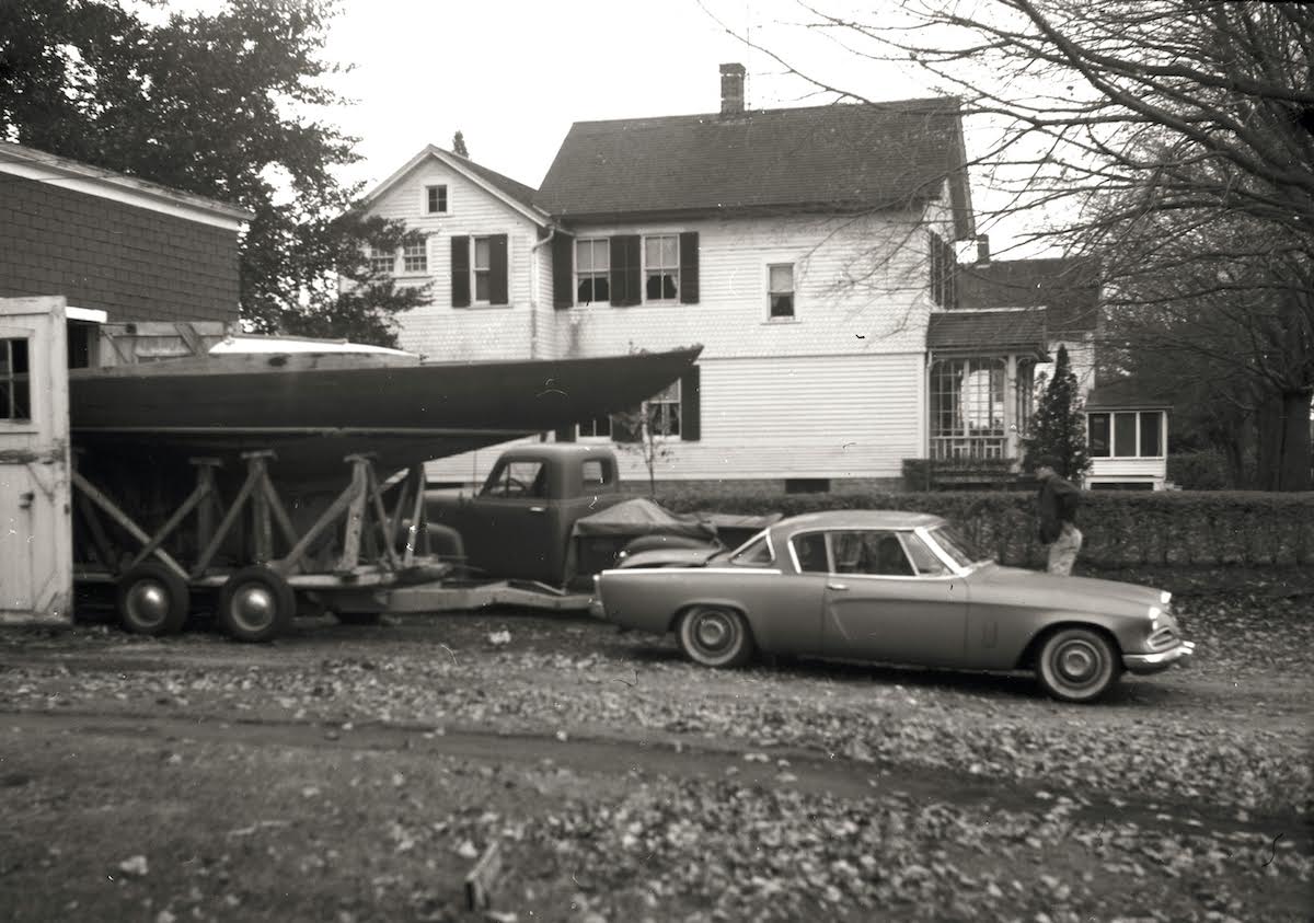 from Maynard Bray: Here's my 1953 Studebaker Starlight delivering our Northeast Harbor A-boat to her new owner. That same car towed that same boat from Mount Desert Island to Noank the year before. Great car and great boat! Wish I still had them both.