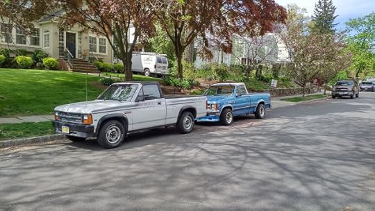 from Jonathan Welsh: "Dodge built fewer than 4,000 Dakota Sport convertible pickups from 1989 to 1991. American Sunroof Corp. cut the tops off and retrofitted vinyl roofs under contract with Chrysler so you can imagine the quality. Spotting two while walking the dog in Montclair, N.J., this morning had a once-in-a-lifetime feel."