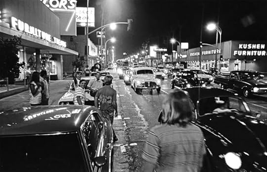 "There were other cruising spots in the city, but Van Nuys, for some reason or other, got nailed as the street to cruise on, specifically, a 3-mile stretch from Ventura Boulevard to about Sherman Way. People would come from as far as Santa Barbara or Orange County to cruise Van Nuys, a wide street with many lanes. Gas was relatively cheap at the time, and that made cruising an affordable way to spend a night out."