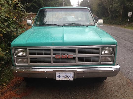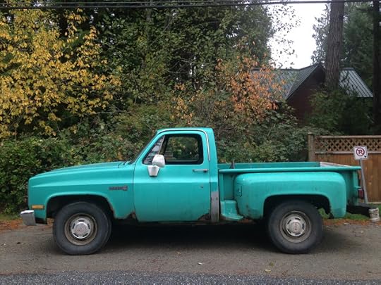 It's salty out there on the islands in Georgia Strait; also very green, by late October, after a parched summer. Winter rains haven't really set in yet, but there's been enough precipitation to restore the many-layered, jungle-green of life on West Coast of Canada. I caught the Jimmy on Cortes Island while heading for the water taxi across Desoaltion Sound to Campbell River, and the long ride home to Cambridge, Mass. via LA. Hope to be back on Cortes next fall to lead another writing workshop at Hollyhock Institute. We know a herd of these trucks in Marfa, where rust is not an issue.