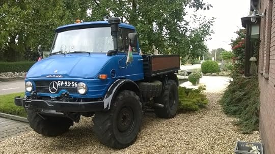 from Guido Goluke, the translator, in the Netherlands: "... my very favourite truck: the Mercedes Unimog. As a kid I used to wonder at the promo photos, in which the Unimog cleared a ditch with the front and rear axles crossed like the bones on the Jolly Roger flag, while schlepping an immense log out of a forest. So the little bridge on one of the pictures is totally unnecessary, the agile beast will climb onto the road without any problem."--GG