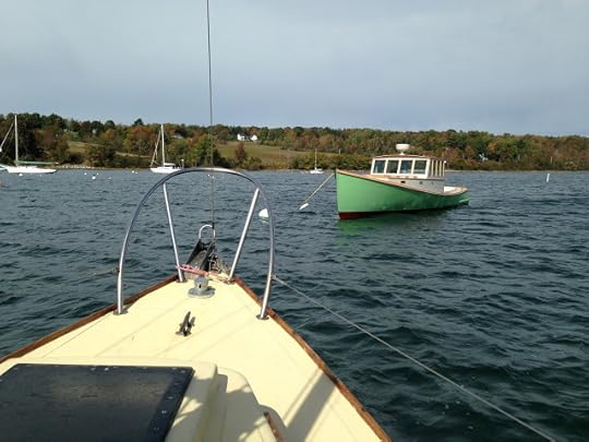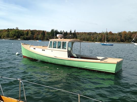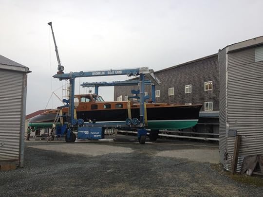 Aphrodite at the Brooklin Boatyard. I remember watching her puffing into Center Harbor some years back, before her restoration. The skipper gunned her in, puffing smoke, on was sounded like the last gasp of her engine, and probably was. She was a rambling wreck, with great bones. She was built for Jock Whitney in 1937 for fast stylish commuting from home, on the North Shore of L.I., to Wall Street. Quicker than taking L.I.R.R. and the subway.