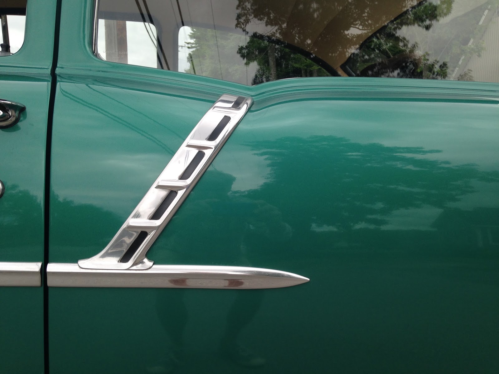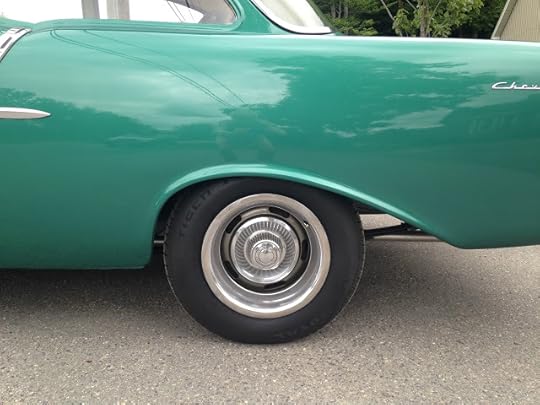 You know the tri-5 Chevys really aren't my thing. Too many of them around, and usually overdone. The whole fuzzy dice thing. Kinda boring. But this one stopped me on the road from Augusta to Belfast. It's a 150, not the ubiquitous Bel Air, and not even a 210. So a plainjane. I like the clean way its been done, not overdone. Just plain handsome. For sale, too.