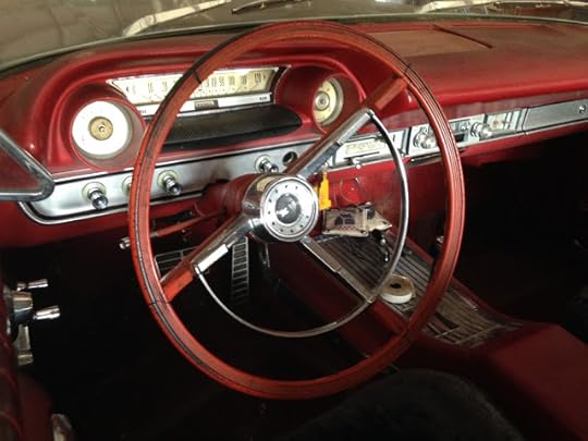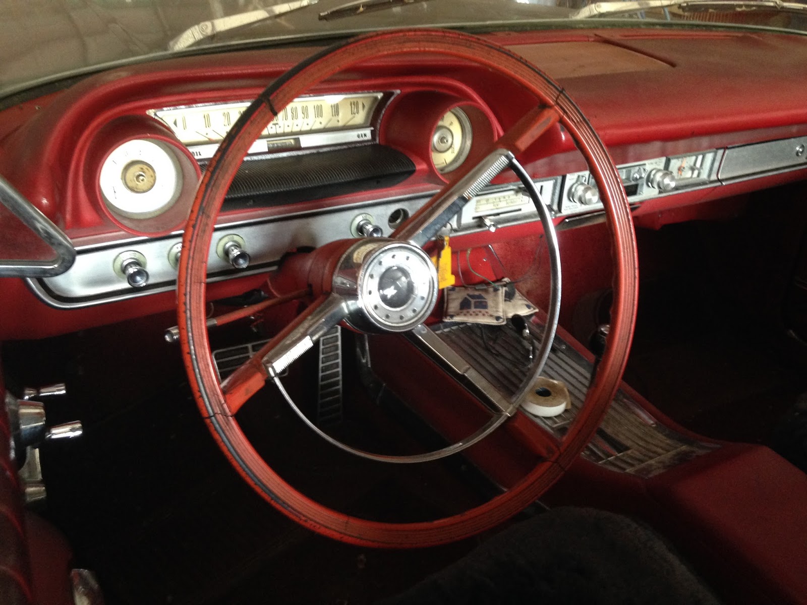 A little dusty, but the real deal in Sedgwick, Maine. Red on black was a great Ford combination in the Sixties. I want a black Country Squire with a red interior.