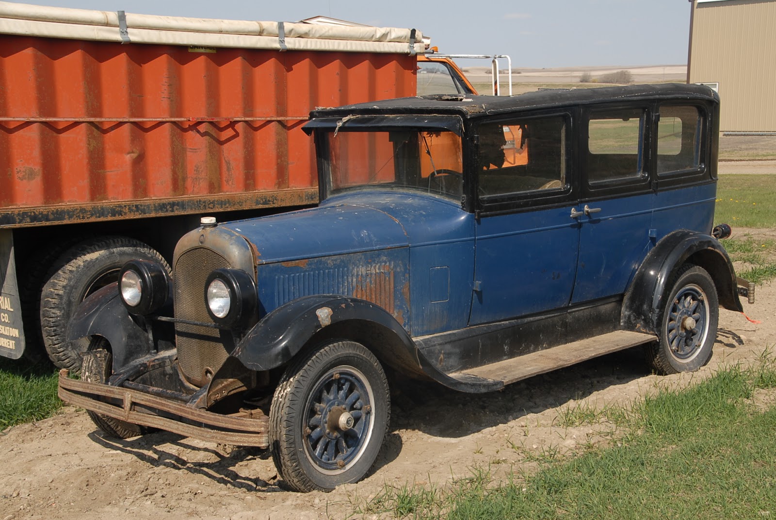 "I spied this 1925-ish Chrysler from the road and went onto a farm property to take these shots. There wasn't anyone around, because its seeding time ... anyway , it's a grand old car , crank start and all . You wouldn't have to take off your Stetson to drive this regal ride . This was just a little west of Cadillac (Saskatchewan). "-AE