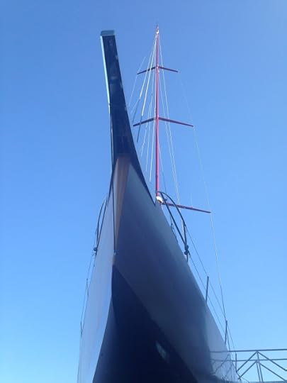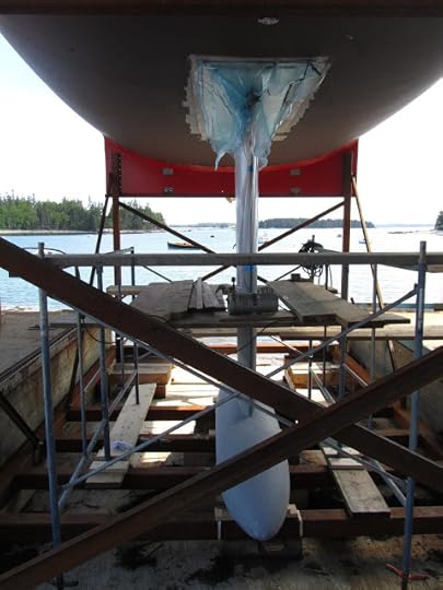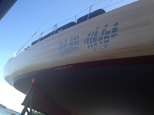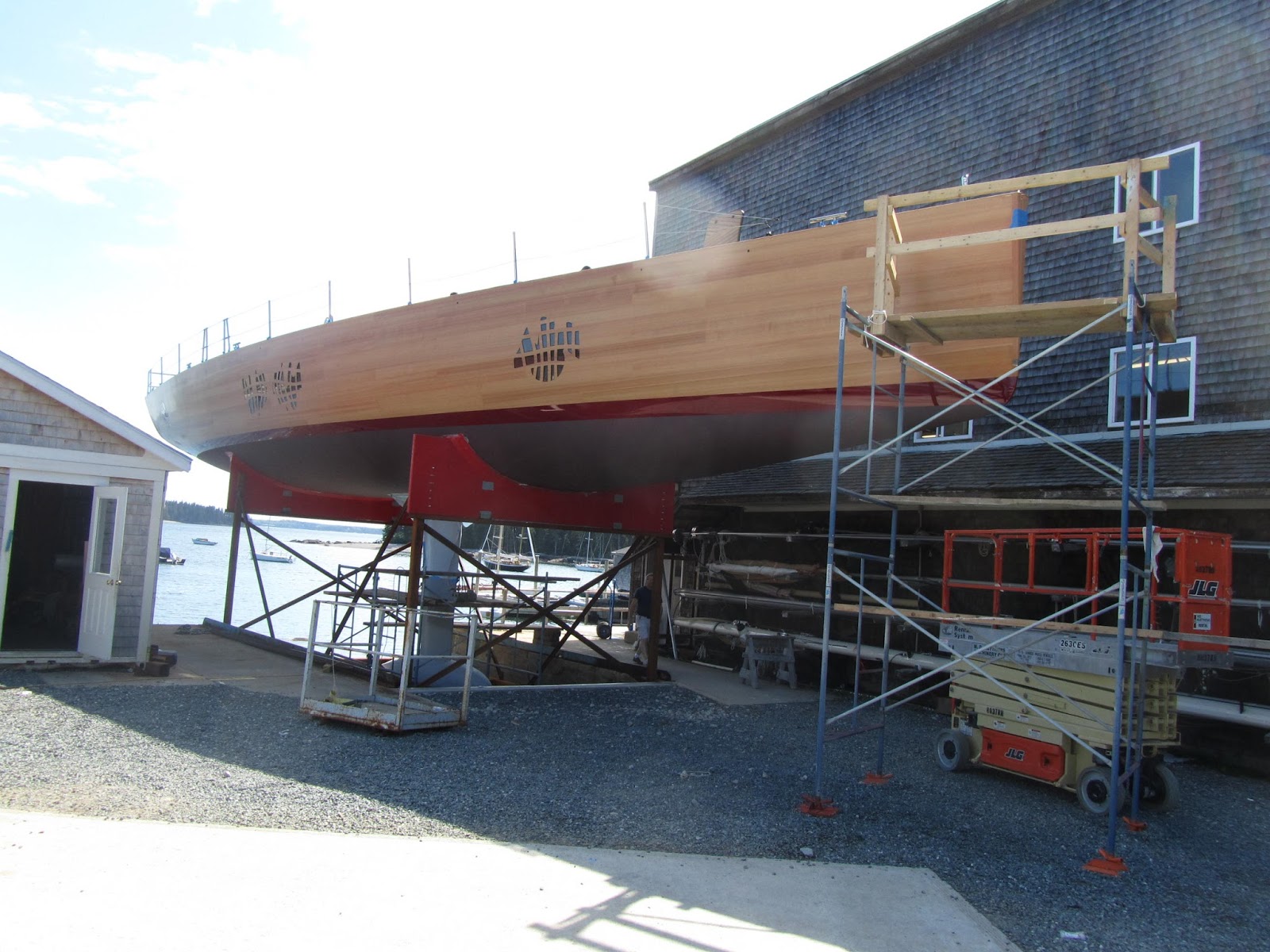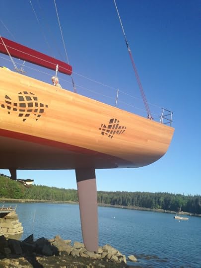 She gets wet on the high tide, 10:57 PM, tonight at Brooklin Boatyard. Frank Gehry was responsible for the interior design but Eric Blake at BBY was responsible for turning an enormous, constantly changing set of ideas & plans into an amazing SAILBOAT. By the way, our friend Lee Buck had designed a stylish and very useful app for calculating tides: Ocean Watch is downloadable for free.
