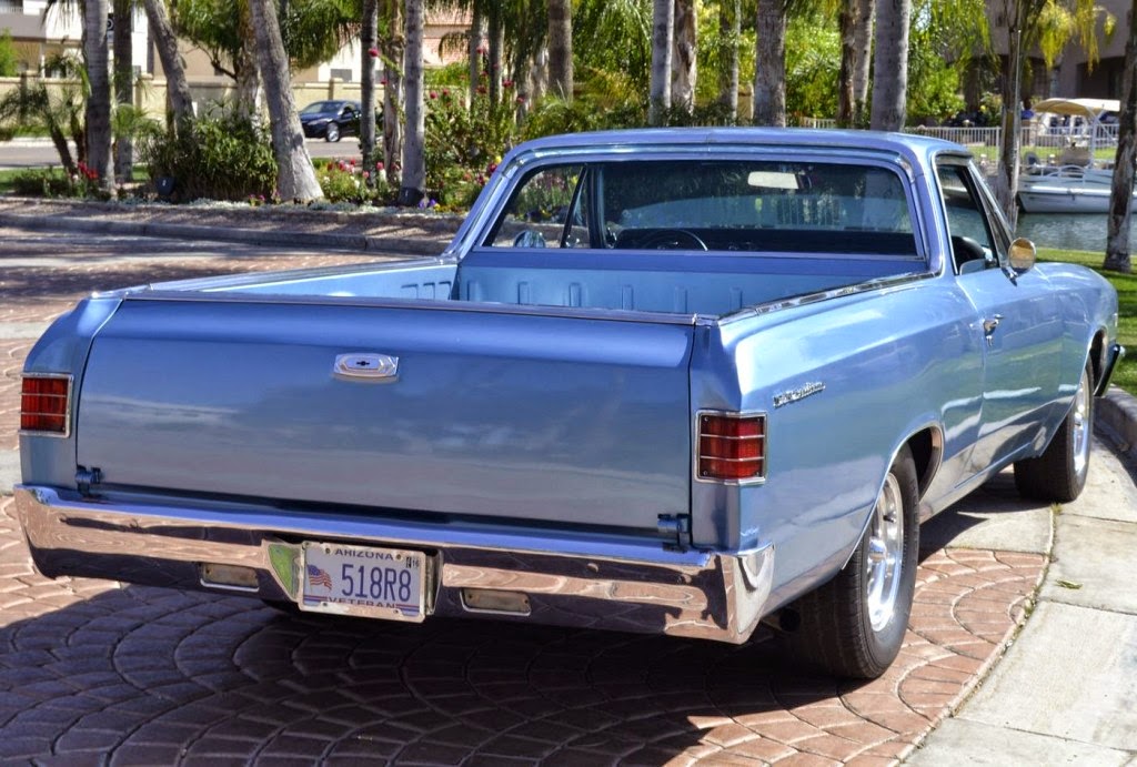 It was a great year for El Caminos. This car's for sale in AZ; you can find out more at B-A-T. Looks pretty cool to me though I'd probably lose the billet steering wheel. That's a crate 350. I want this one.