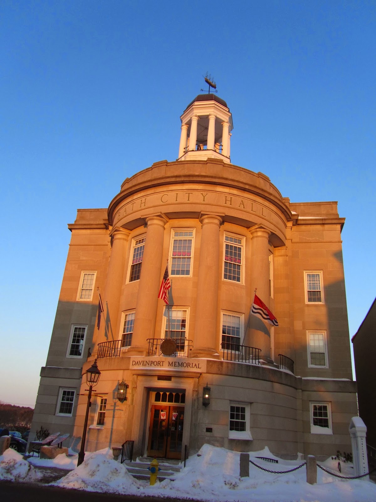 In the depths of winter in Maine, but things are looking up. It was seven below zero (F) this morning on the drive to school; and we're due another snowfall tonight. The drifts are hard-packed and often six feet, or higher. I'm in Portland this morning, where neighborhood streets feel like tunnels. Howevah, Spring comes in, in less than four weeks from our frigid now. And Daylight Savings Time clocks in March 8. We steal back an evening hour, which counts for a lot here at the downeastern end of the time zone.A couple of day ago walking around the city of Bath with my Dutch amigo, the translator Guido Goluke, the light was there at 5pm. Which it wasn't, a few weeks ago. Maybe the only thing to do in frigid later February is ski or snowshoe when you can, and if you can't (bad knee) ignore the snowdrifts and peer up at some of the wonderful buildings on Main Street.