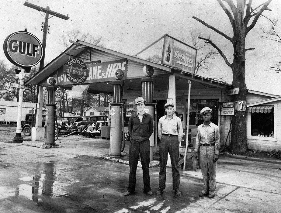 Thanks to Larry Nordell for this. I don't know anything about the photograph. Winter 1937 and somewhere down South. Georgia? Birmingham, Ala.? If you can read more clues, let us know. The careful probably instinctive way the men are posing for the camera... I'd say the black guy is precisely twice as far from the white guy as the two whites are from each other. He's standing at attention, the other two 'at ease'.