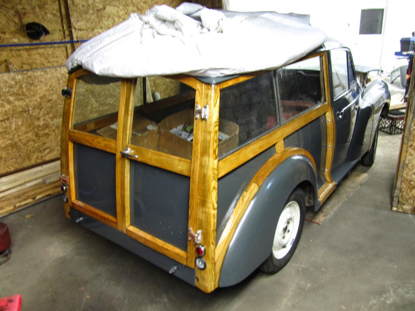 The car is being rehabilitated at Sean McKay's shop, Affordable Performance, on the Naskeag Rd. Becky Smith sent us one from London last summer. And Craig Manning spotted one amongst the Trabis of Berlin. Then there was the Morris Minor van "straight outta Devonshire" that we spotted in Maine this fall,