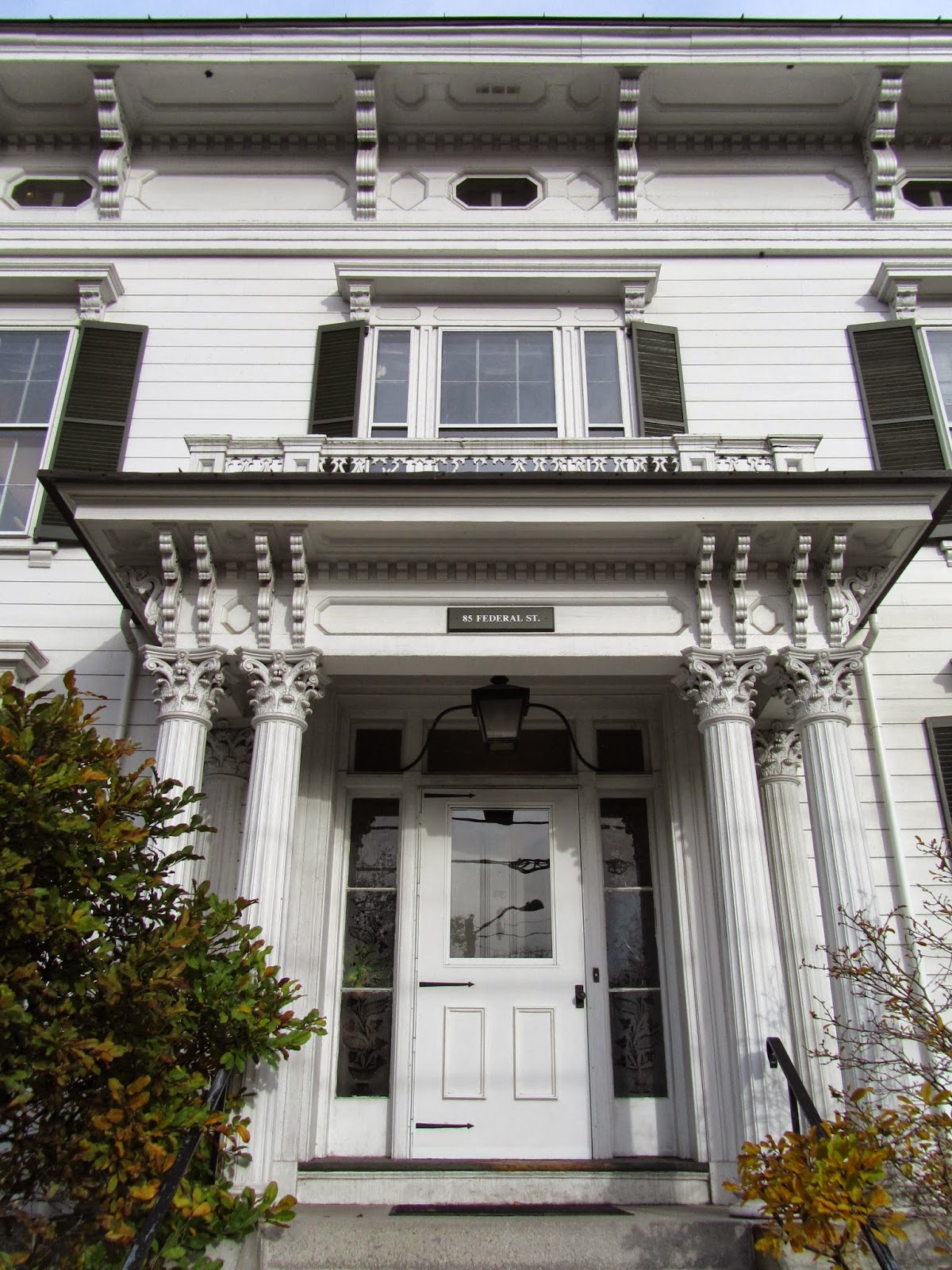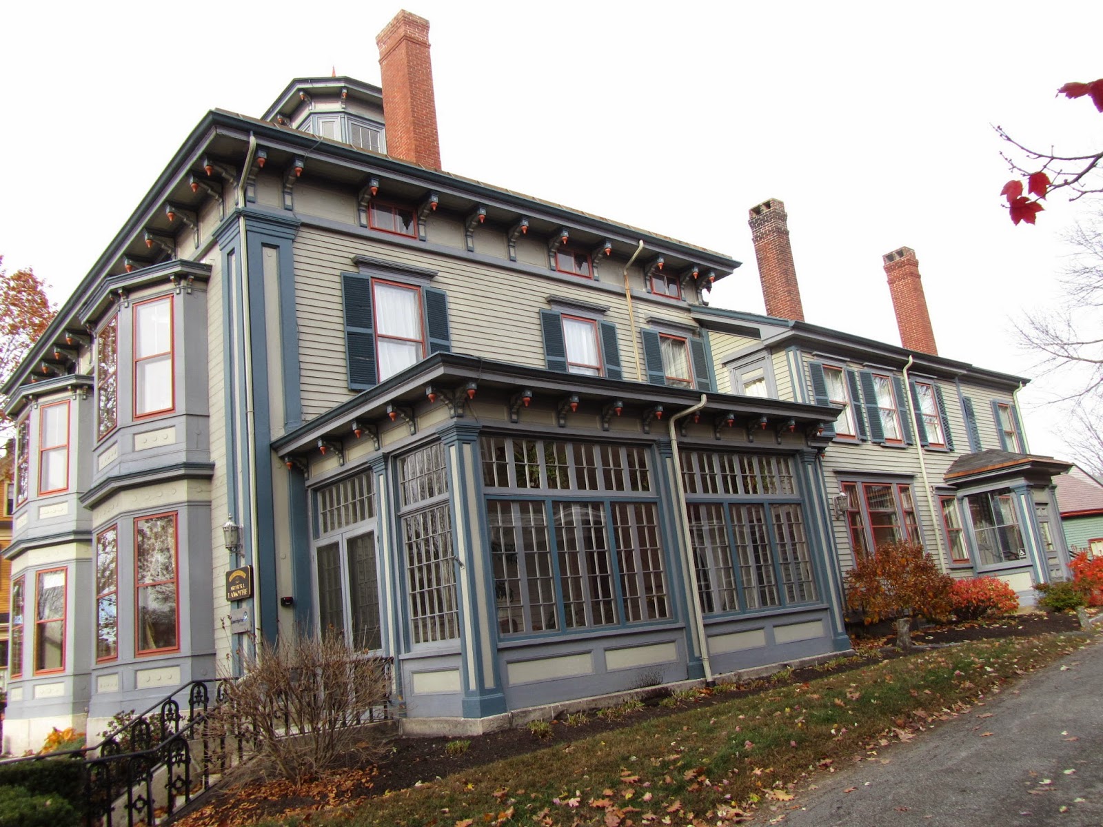 I've been spending time In Brunswick this fall, working out of the library at Bowdoin College. The first cotton mill in Maine was in Brunswick. The textile industry produced much of the wealth that went into these mostly nineteenth-century houses on Federal Street, Cleaveland Street, and Park Row. Bowdoin College is a big factor in the town's history, and I plan a separate post on the campus architecture.