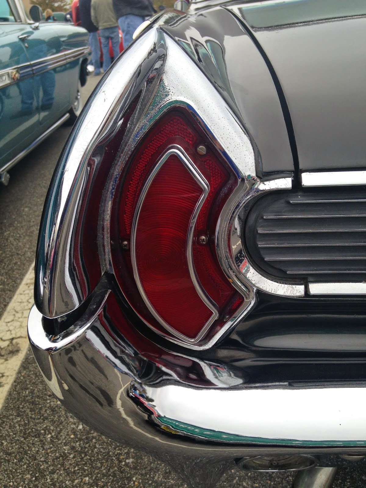 Black/red is my favorite combination and was on a lot of the Fords of the era. Something about that October light slanting through the trees...it's a provocative kind of light. Poignant. Maybe melancholic. Whatevuh. The afternoon is sweet but, hey, winter's coming.Ford convertibles a year or two earlier were called Sunliners, I seem to recall. A couple years ago we found the coupe edition of this car out on the Llano Estacado in northeast New Mexico.