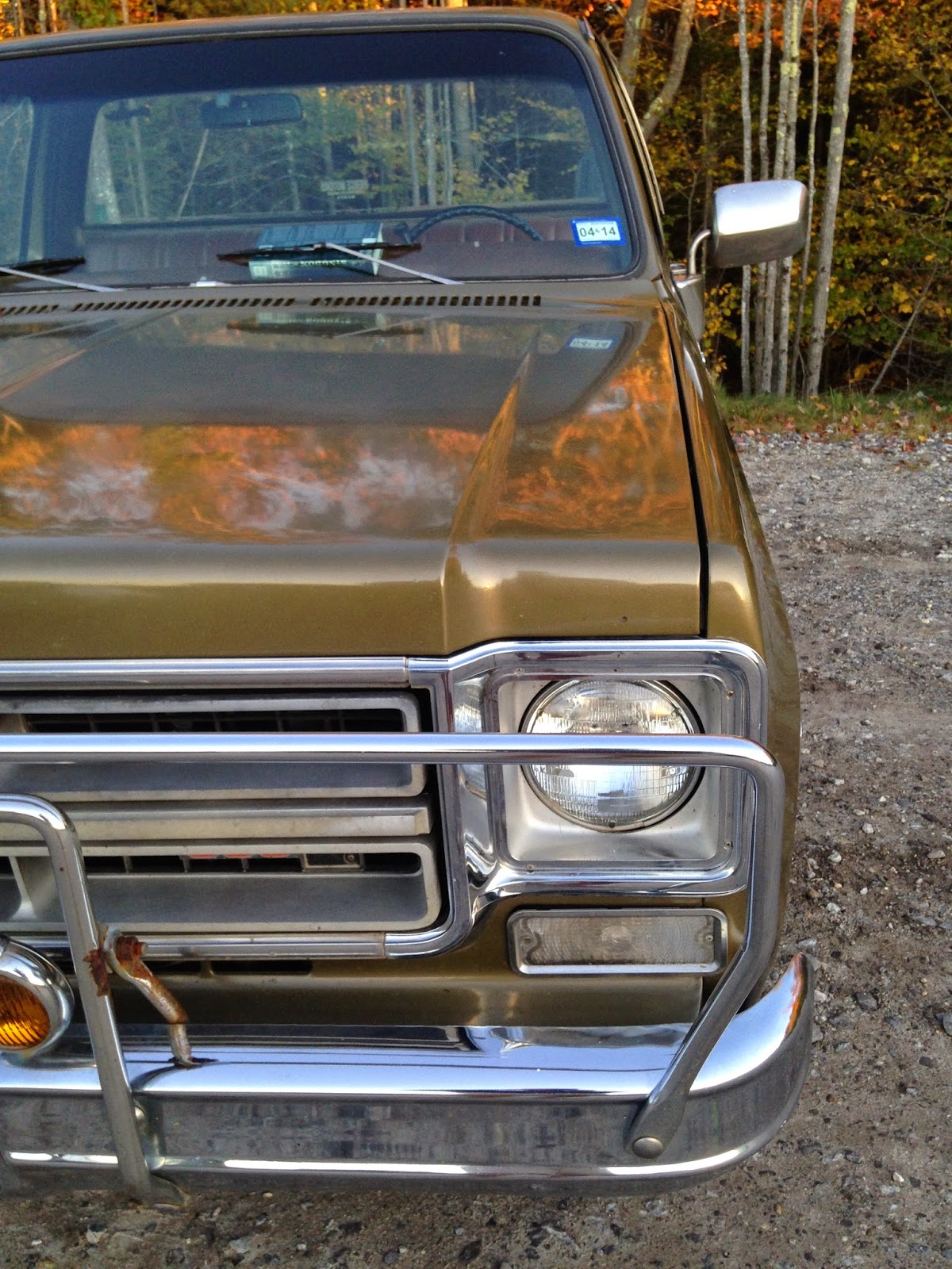 Sunday afternoon, bright, West Texas winter day. H and I were cruising down San Antonio Street when we saw the truck on Bee Pierce's lot. It was the only vehicle for sale, except an old fire truck. Next morning--bright cold--after dropping off H at school I stopped by the lot. Took the truck out for a drive. Bought it. It was shipped up to Maine that spring, and it spends winters in the barn here. I'm the 2nd owner, or 3rd, if you count Bee Pierce. Truck was originally bought from Casner Motors in Marfa, the GM dealership, which is where the city offices are now.