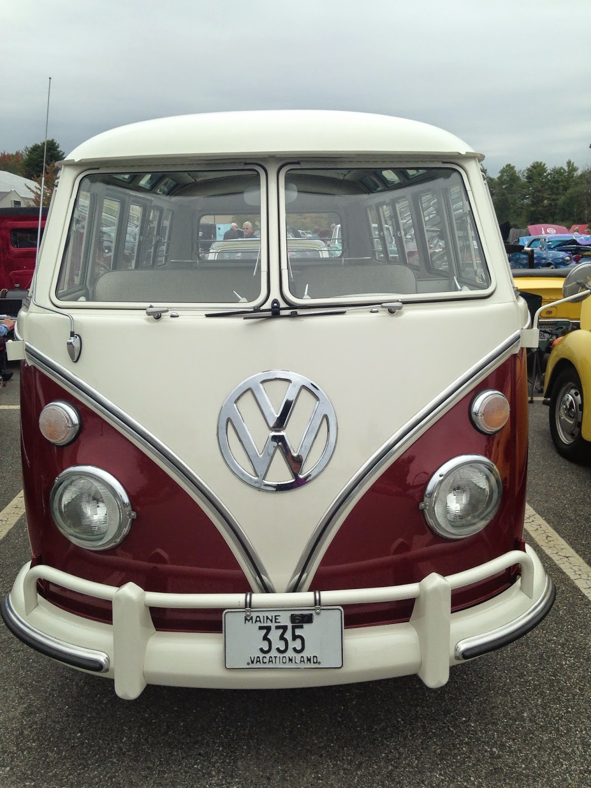 We're not much moved by trailer queens, those meticulously restored and never-driven vehicles that turn up at high-end auctions and car shows. But at the sort of shows we have in Maine, most machines get their under their own power, and spend at least the summer months out on the roads and backroads. We caught this bus a couple weeks back, at a little show in Falmouth. Lost my notes but I seem to remember this was an unrestored original, extraordinarily well-maintained. There are VW people out there who will know the exact year, but I'll guess somewhere 1964-66.