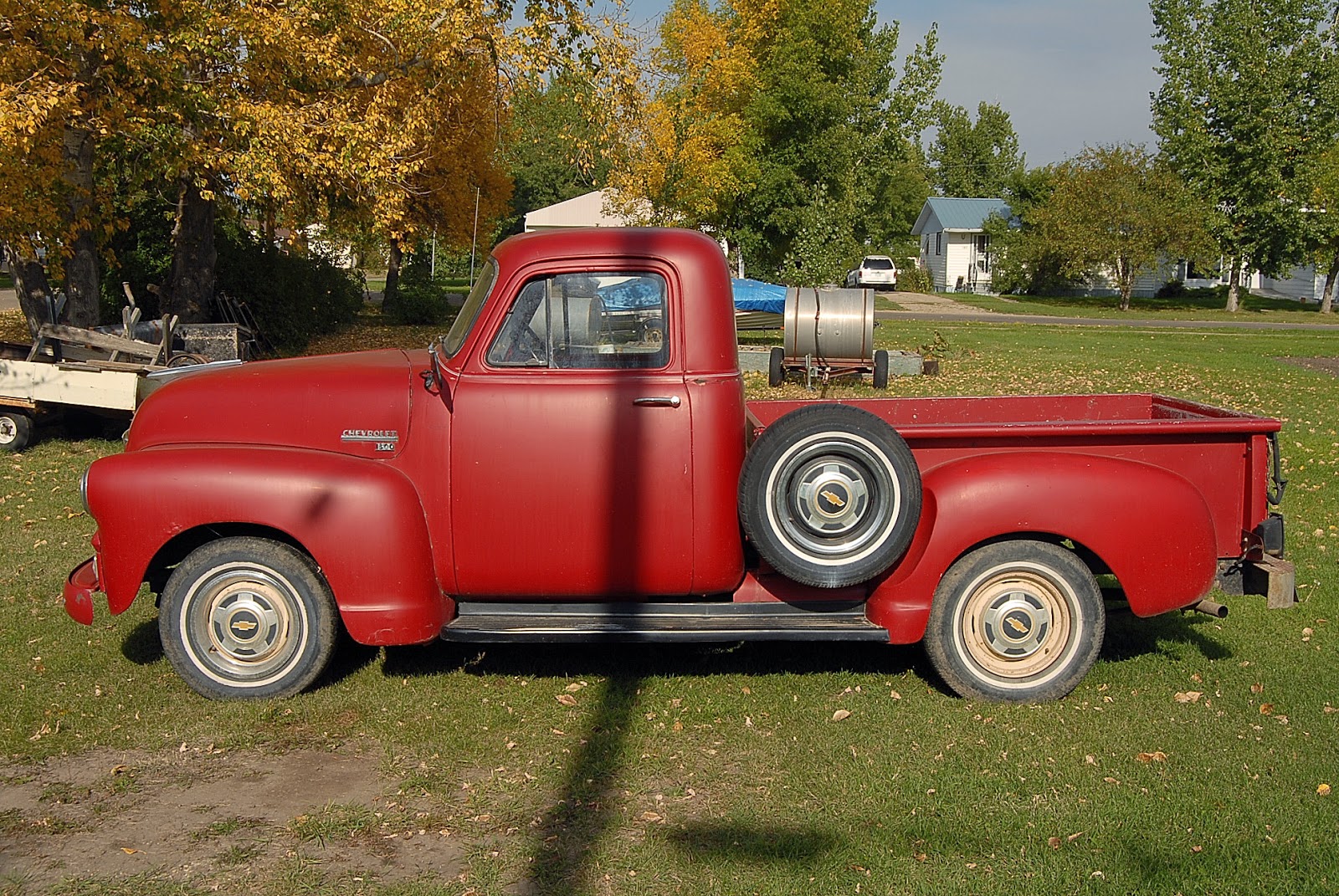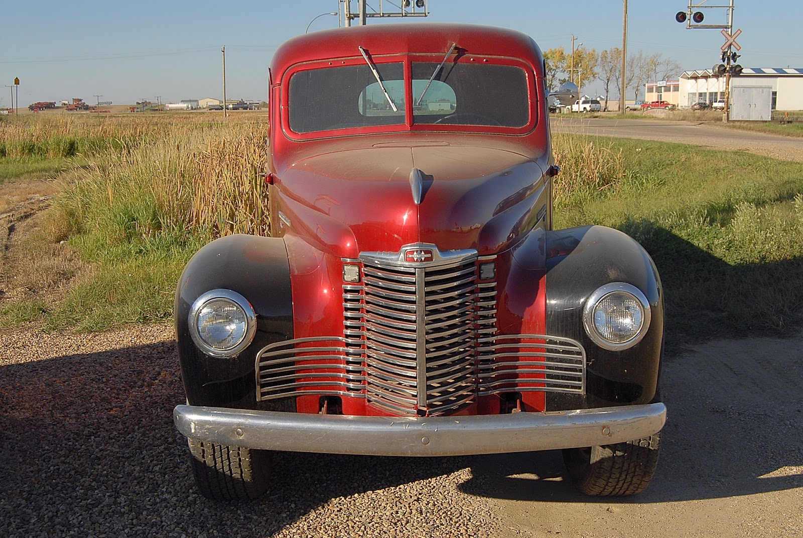 From Alex Emond, in southern Saskatchewan. Where the bandits flee, in Richard Ford's wonderful novel Canada. "This truck was parked outside a tire shop in Assiniboia, Saskatchewan . The body , paint and interior is absolutely flawless . It is quite astounding really ... don't know if it has a newer , big motor . The wheels indicate that it has better brakes than it was born with . Quite a gorgeous truck ... if you like 'awesome'. This red Advanced Design Chevy ain't too ugly either . It was just posing in a yard in Central Butte , begging me to take its picture . There is something in the water , that makes these prairie folks pamper their old iron."-AE