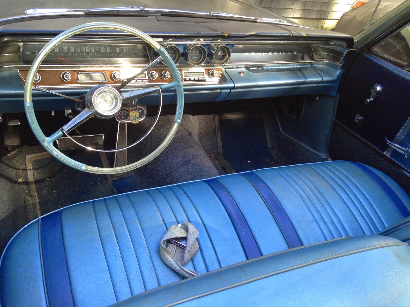 This car lives in Blue Hill. A one-family car for 51 years. Restored 25 years ago. Runs great.I've always has a thing for Pontiacs. Wrote an essay called Love Cars exploring why. And 1956-64 Pontiacs especially. Have a look at some of these Poncho posts on Autoliterate:http://autoliterate.blogspot.com/2011...