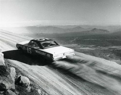 Or Parnelli Jones’ Mercury Marauder, here heading for the clouds at Pike’s Peak, 1964. (Image via Axis of Oversteer. I found it on Four Lean Hounds.)