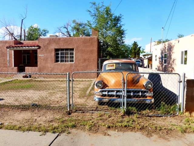 Over the last year or so I've done a few Autoliterate posts on Llano Estacado. So you know I'm obsessed with that West Texas/eastern New Mexico high plains region. One way of working through an obsession is writing a novel. My third novel "Karin"-- which will be out in Fall 2015 in US & Canada --is a Llano Novel (though mostly set in Frankfurt Germany in the 1930s). Some key chapters happen in and just west of Lubbock. If you're wondering about the connection between nazified Frankfurt and West Texas, check this post.I'm trying to ID this car: I'd say Plymouth Fury III, 1970. Stylish machine. That avacado-ish green was the tone poem of the Seventies. My Maine/Marfa truck is painted in a close but slightly different shade. Track the Plymouth on Lubbock Architecture's Facebook page. (My novel also happens to feature a Plymouth out on the Llano).