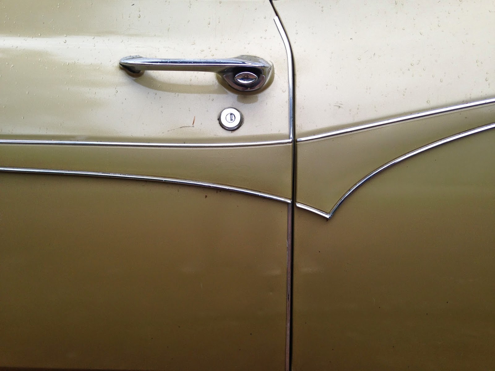 and clean old Fords, like this one Aidan O'Neill found near the ferry dock at Tadoussac. Maybe the last four-door hardtop made? I don't see a B-pillar, anyway. Custom 500s were the stripper version of the Galaxie and what became the Crown Victoria. Basic big sedans were very popular in Canada.