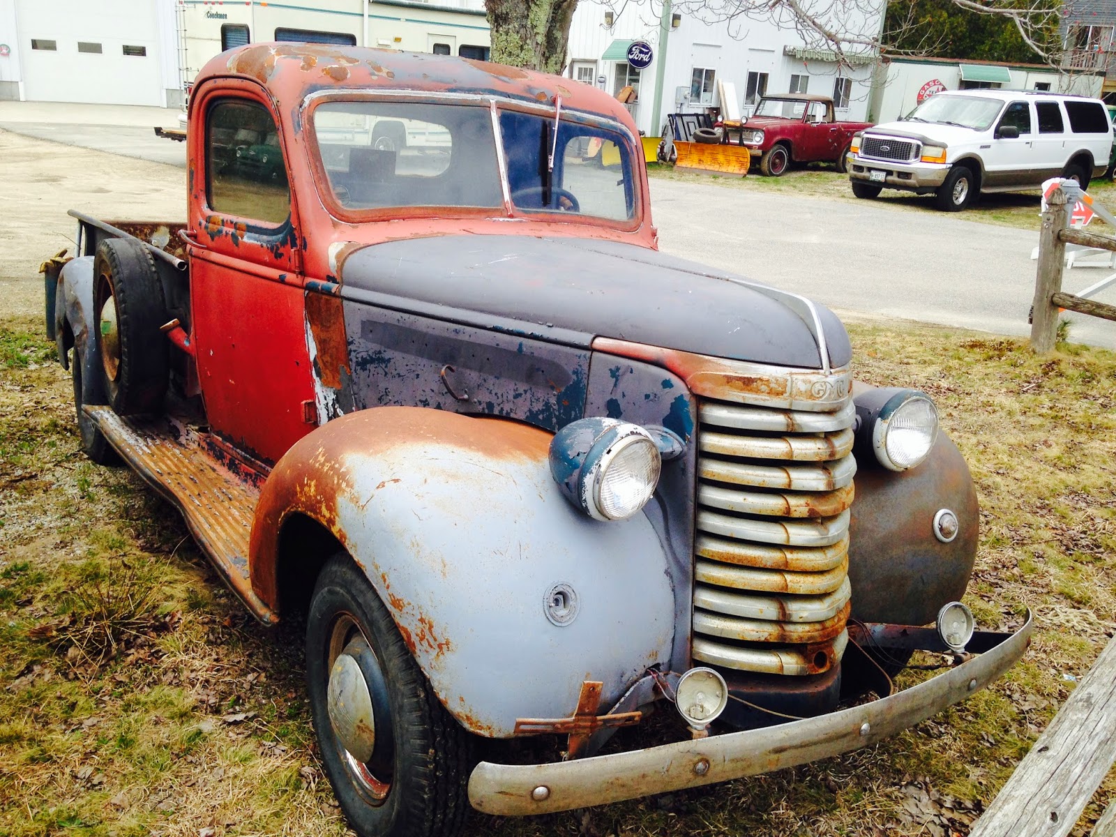 1940 GMC and 1940 Chevrolet truck. Arundel, Maine
