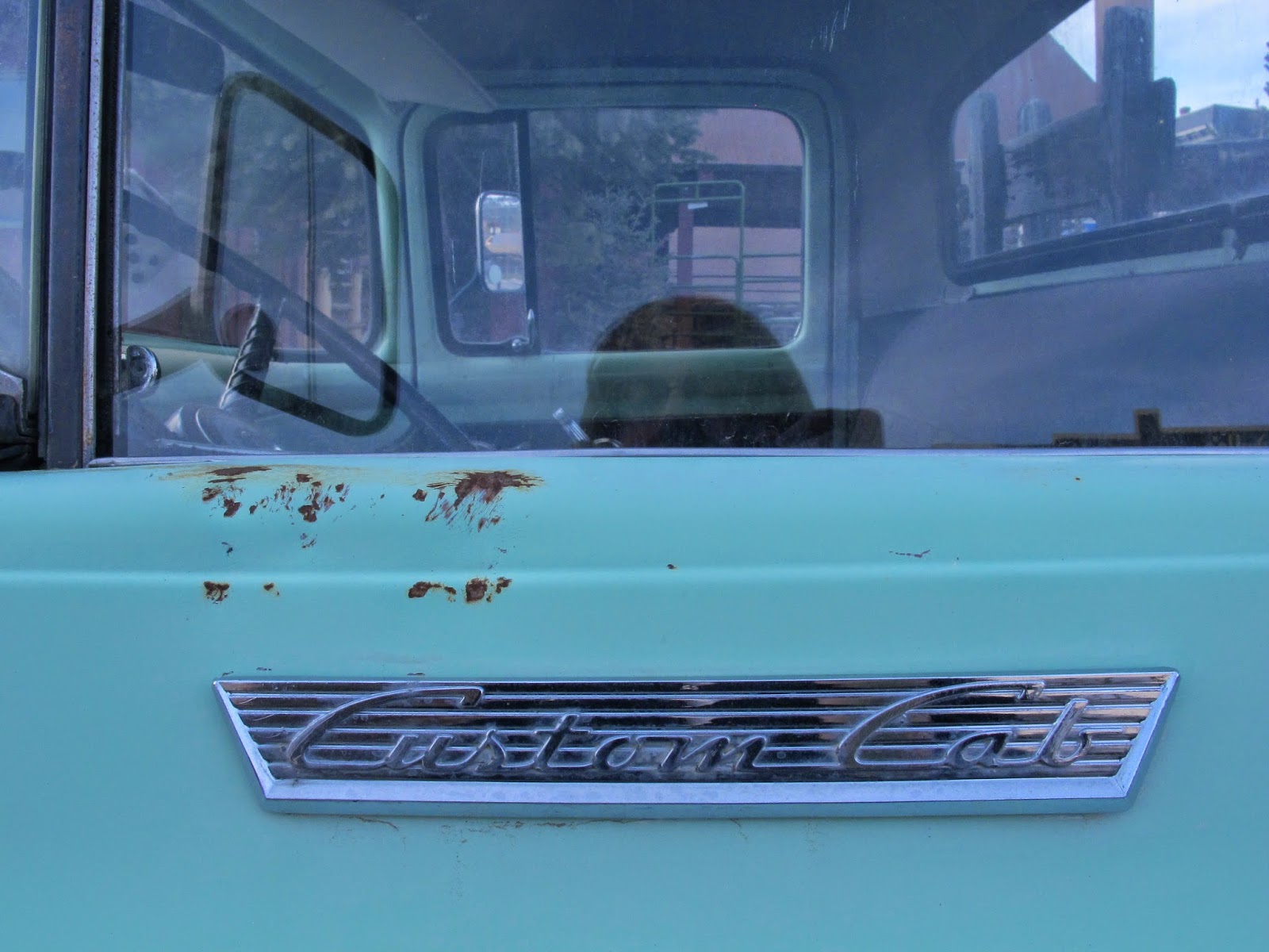 "I saw these Fords perched above the highway as I was leaving Swift Current ( aka Speedy Creek ). The blue one looks like it has got a little git up and go to it, if it's got a V8. Shorter wheelbase. I did not talk to anybody , regarding price ... I just pulled over and did some stealth journalism and drove off. The green machine looked to be the better machine if you wanted a yeoman workhorse . These trucks have different personalities for sure , once you get into the murky pseudo science of " projected images ". Like , Jimmy Buffet would gravitate towards the blue Ford, for sure. Humour. The 1959 Cadillac was in the yard too ... nice 2-door , fender skirts , messed up paint."-AE