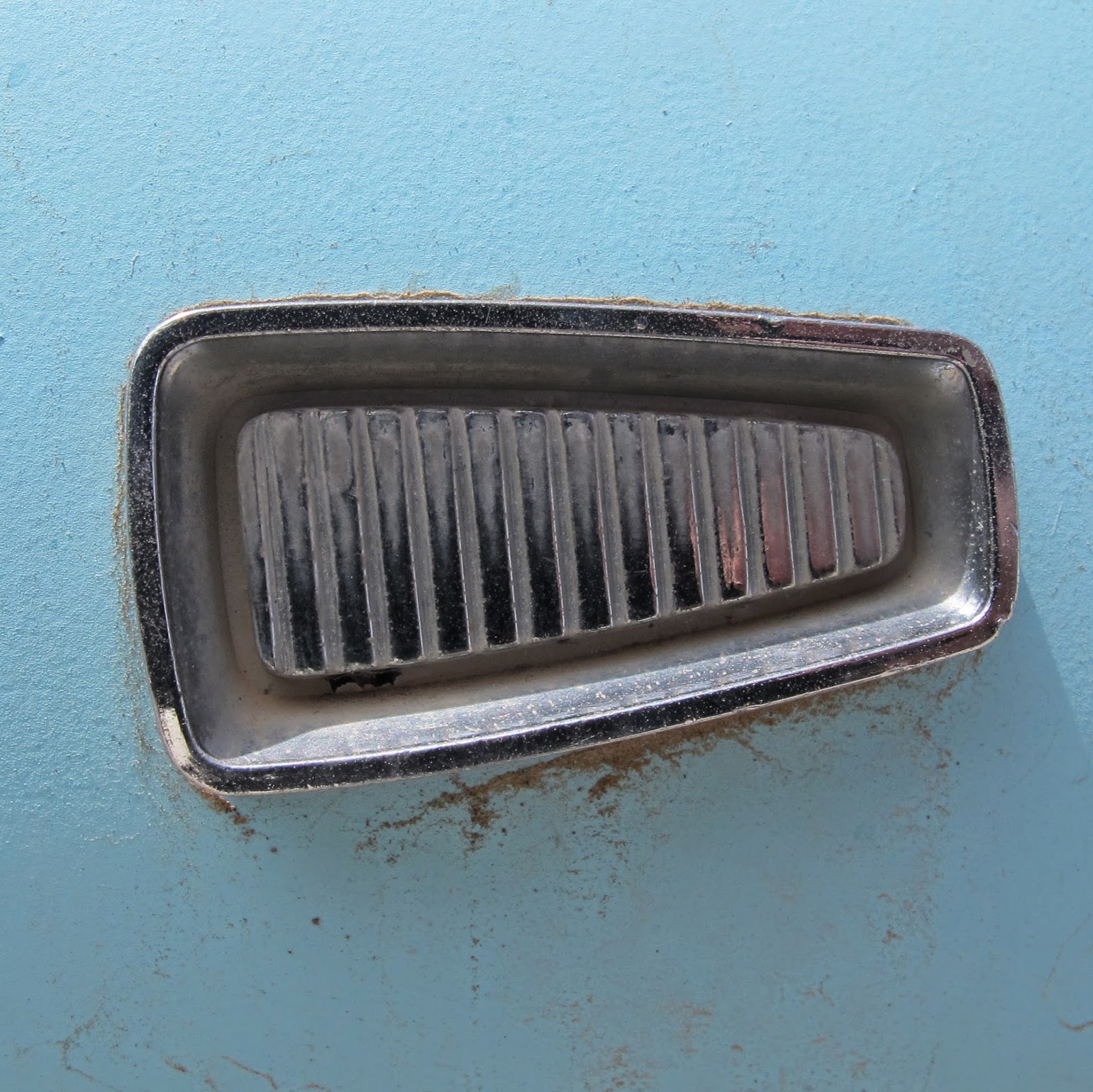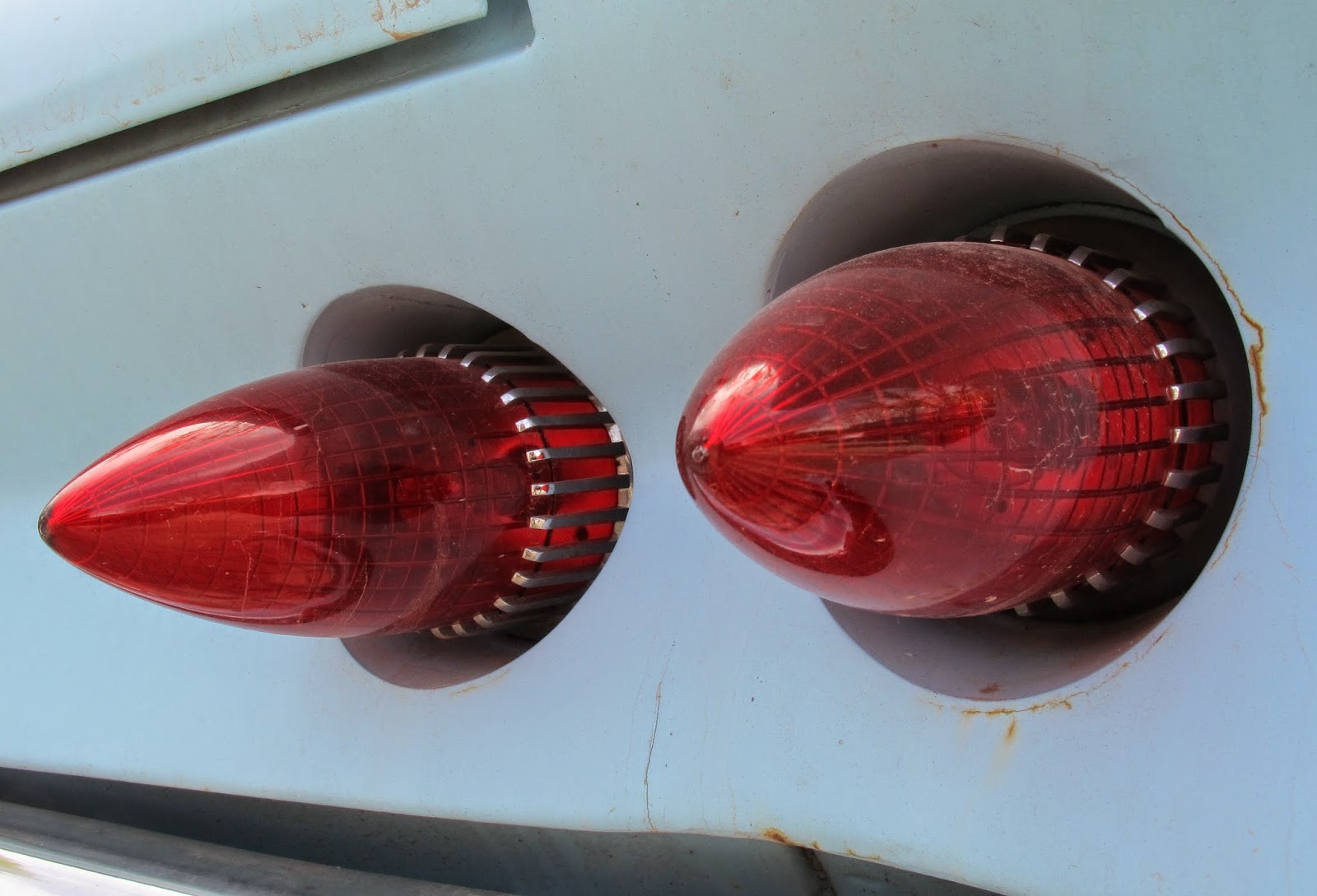 from Anne Lennox, on the road in northern New Mexico:"We found this at Rancho Chimayo Restaurante, April 25, 2014. Owned and restored by Eric Vigil. Modified into a low rider. The taillights are from a 1959 Cadillac, the grill and some other parts are also from different cars..."--AL