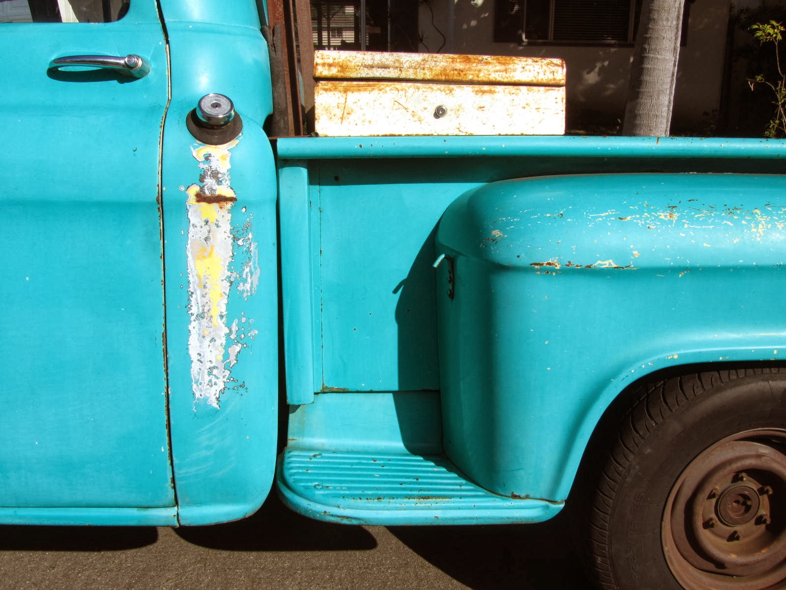 Recent shot that is overly generous as it was still wet after a washingWheels/Tires - the current 17" wheels are the old split rims with tubes. Besides the issues with getting flats, there are limited options in tires in those old sizes and I want to have modern, rugged tires. The excellent Western Tire (not in our Recommended Sources & Services, which is an oversight) recommended buying modern 8 lug wheels so I can mount modern tires. I found a craigslist set of wheels that took me to an unfortunate Whittier backyard of a man in a too-small, too-stained white t-shirt and 5 beagles. I like beagles but I also like clean, white t-shirts that fit. Nevertheless, I have the wheels which have been powdercoated gun metal gray and are waiting for funds to buy tires. Not sure what tire I will choose yet. I am partial to BFG A/T's as I have had good luck with them. I like a narrow, pie crust farm truck look, but with the extreme weight of the truck, I believe a widest possible tire will be a wise choice for sand flotation reasons. Seeing as I am not lifting the truck or cutting the fenders, the options will be pretty limited.Interior - This is my focus right now. The dash is largely apart and I am fabricating a gauge panel. Gauges will then need to be plumbed. I installed a sound dampening pad and a repro rubber floor mat. It looks excellent. I need to get the driver's seat reupholstered and find a passenger seat (soon to be added to ourEpic Want List.) Windshield needs to be pulled to have the seals replaced (if anybody has a good auto glass place in the East Valley or NE LA, I am interested.) Needs one rear door glass panel replaced as it is currently a fogged piece of plexi. Needs weatherstripping all around and I hate installing weatherstripping. I hate that runny black glue and my results are pretty lackluster. If the same glass place would do the weatherstripping, that would be great.Exterior - Big Red was painted with a brush - several times - so my hopes for the exterior are modest. I am going to try to buff/even out the exterior just to knock down the tall stuff, dust off the loose stuff and fill the dry stuff. I am open to suggestions on this.That is the near term for time and money. Runs great. I am going to replace the water pump as a security measure. Get the engine cooling system flushed and pressure tested.