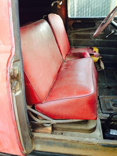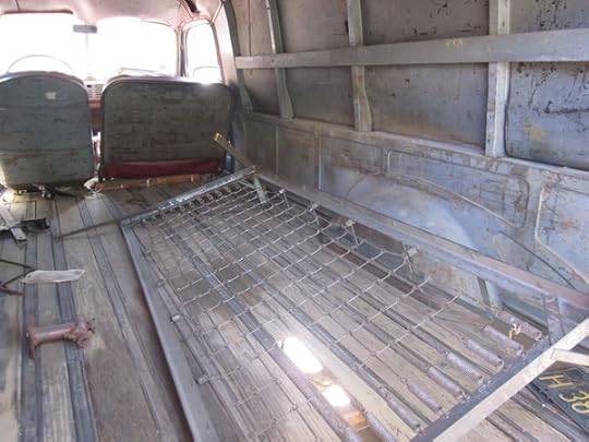 Originally, a passenger seat was an option in a panel truck - an option that this truck did not get. LT Gotchy put in this bench at some point. Not to modern safety standards!