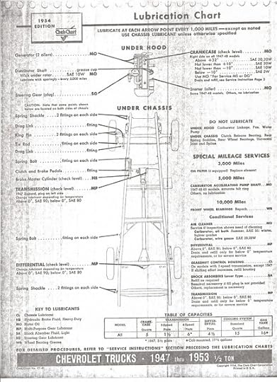 Also, Upon ArrivalThe truck has had at least five owners. The paperwork trail that I have goes back to LT Gotchy in 1955 and, frankly, that is the only owner that really matters in a grand historical sense. The truck is a 1948, LT bought it in 1955 for $460. That same year he installed a brand new 1954 261 full pressure oiler 6 cylinder engine for $444.59. What a hot rod thing to do! Nearly the same price as the truck. The 261 is the Chevy 6 to have and was never in a panel truck as they were destined for big trucks - like school buses.
