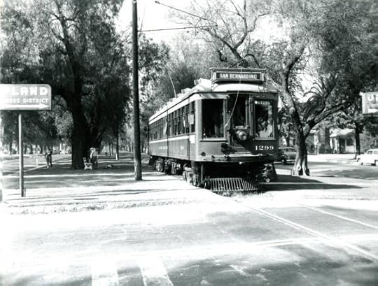 LT Gotchy photographing the Pacific Red Car in 1946 (Orange Empire Railway Museum)9 years after the above photo was taken, LT bought Big Red. Makes perfect sense. I wonder if he bought an existing utility truck with the roof rack and giant cow catcher on the front. The early photos show them already in place complete with the same bends and dents that are present today.