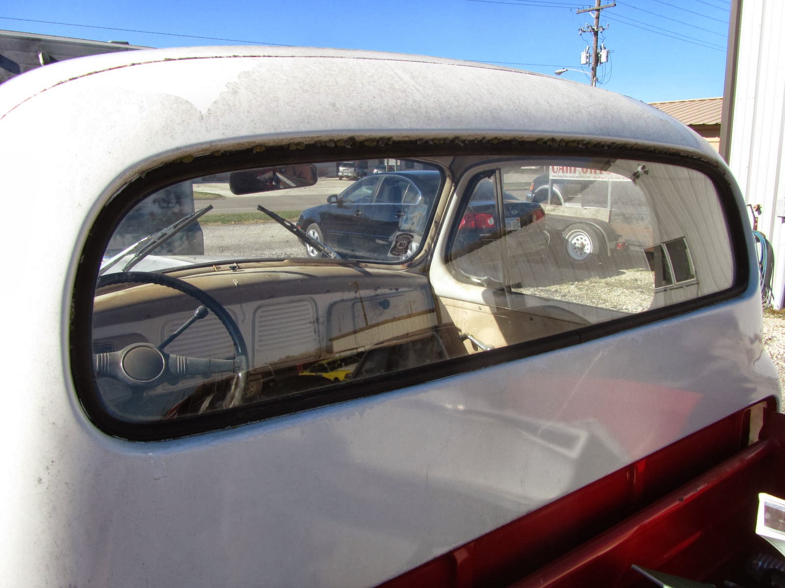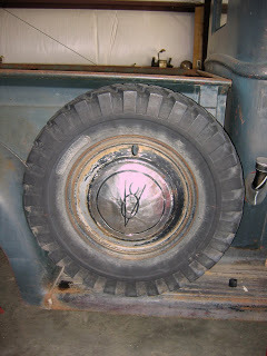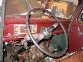 Another interesting truck at Bill Grant's this week is this 1939 Ford pickup, which looks like the 3/4 ton version, and appears to be mostly original, with the original V8 still on board. Bill was doing a brake job and repacking bearings. (1939 was the first year these trucks had hydraulic brakes.) She was repainted at some point: see the original red interior.