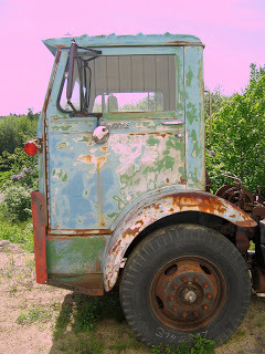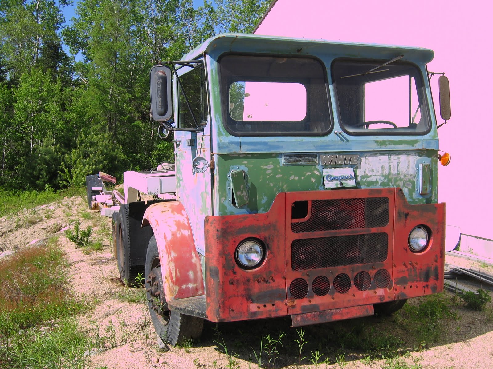 1939 Ford pickup, a White truck, A Detroit Diesel, and a Cape Dory