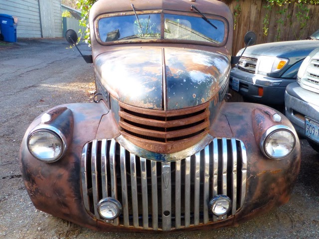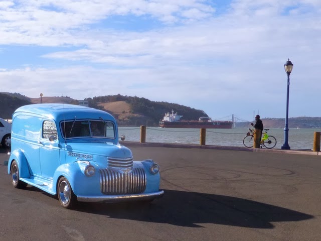 "First day in Benicia and, lacking the rain we so sorely need I ride my bike down to the jetty to find this 1942 Chevy panel truck...the rarest of the rare [it having been wartime and all;
