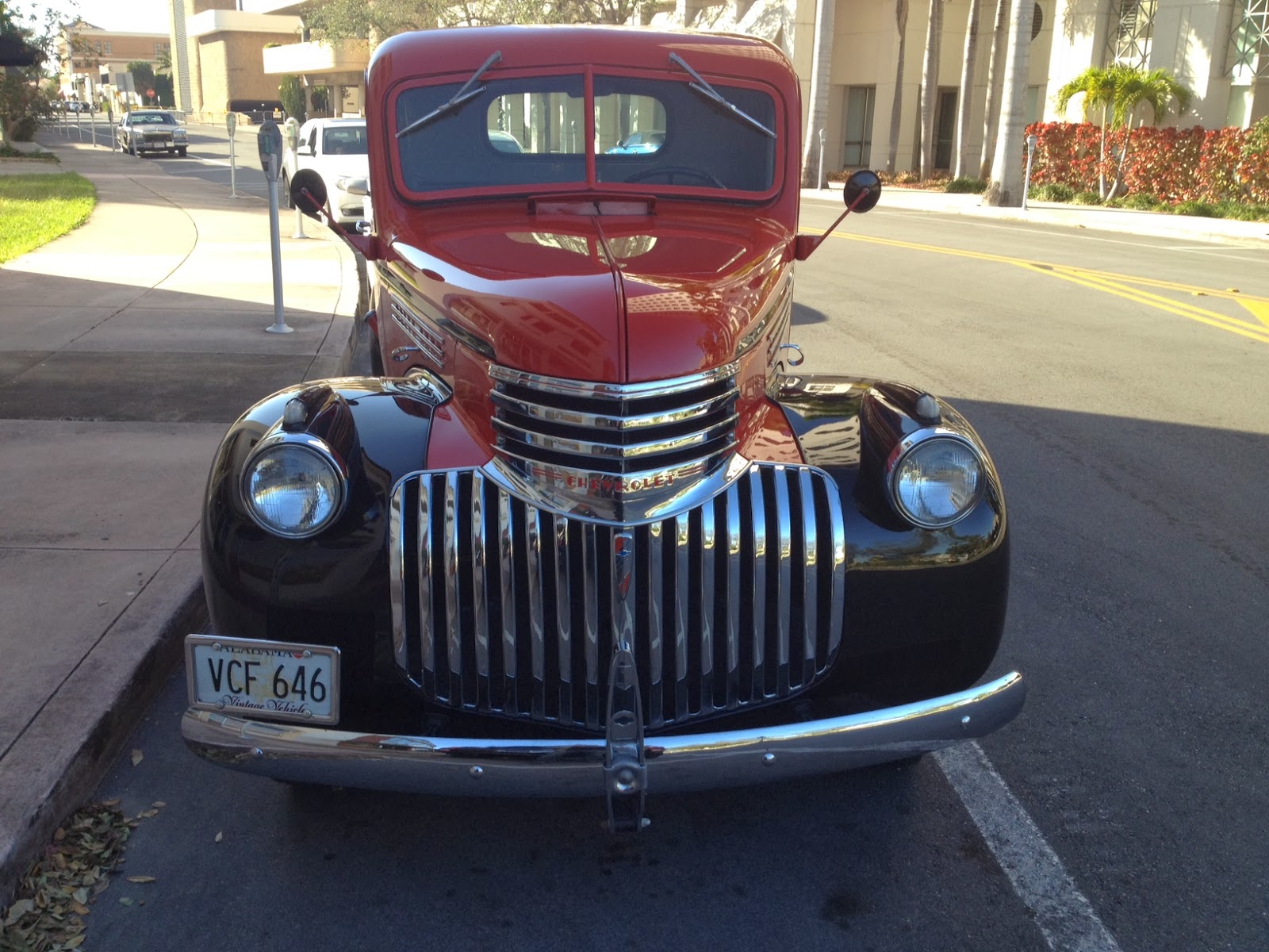 Javier Reyes caught this astounding late-Art Deco Chevrolet from the "Wurlitzer" era(1938-45) in downtown Coral Gables, Florida. We've had a few of these trucks up on the blog. The painter Chris Baker caught one in Santa Barbara; the artist Michael Moore owns a radicalized specimen; and of course there's 2013's Autoliterate Truck of the Year from Colorado Springs.