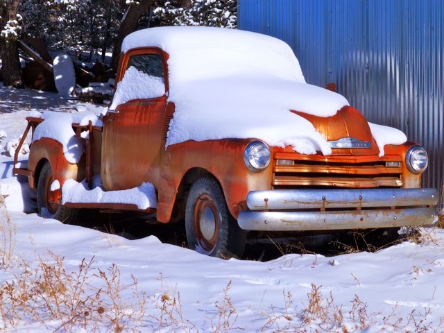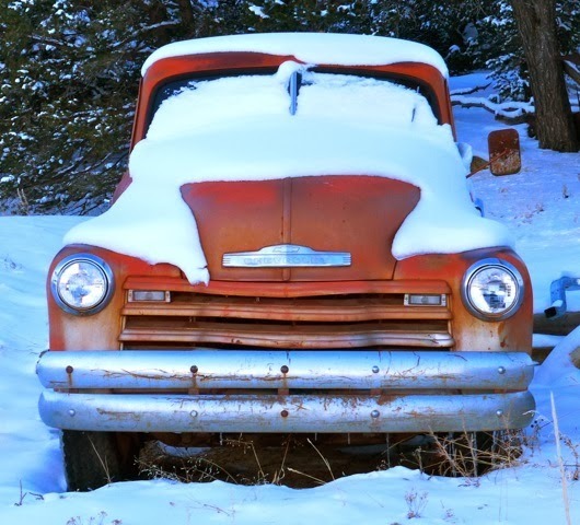 Southern Colorado. Snow. 1950 Chevrolet Fleetmaster.