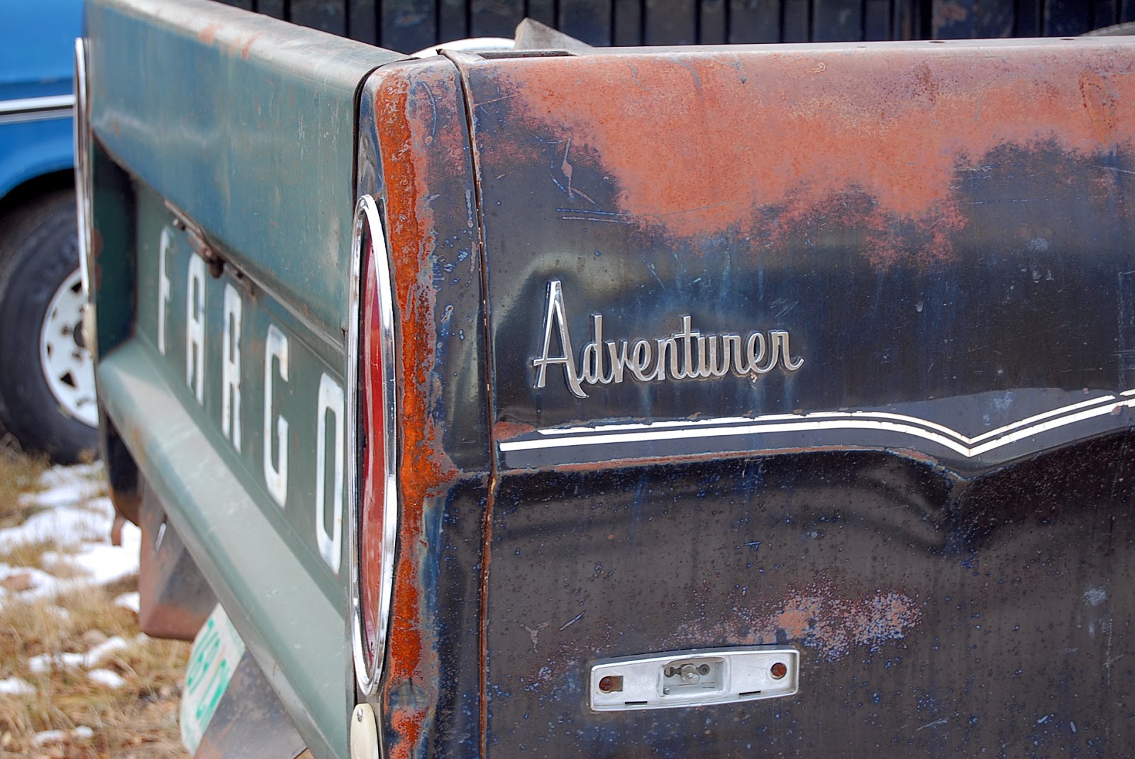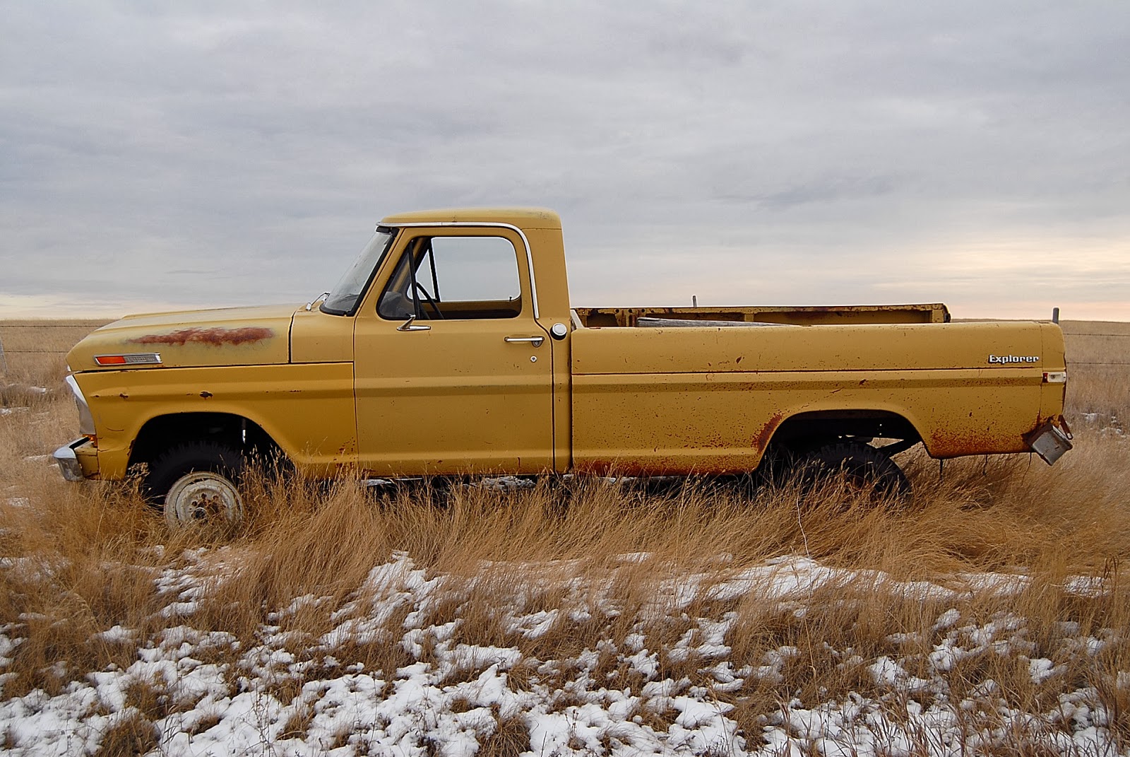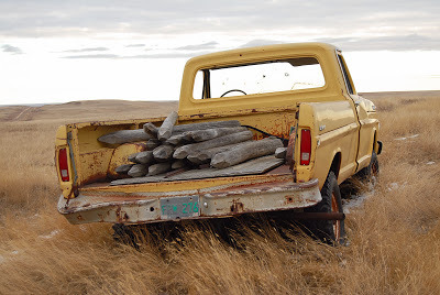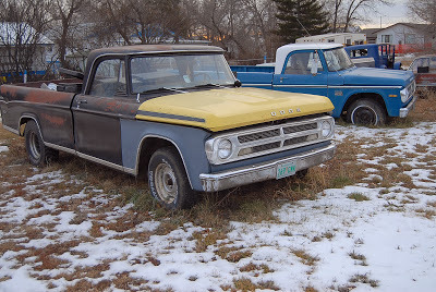 From our man in south Saskatchewan, Alex Emond:" Whaddabout those Roughriders !?!! Grey Cup in the bag. I managed to spend a chunk of the past week in Ponteix and old trucks just keep turning up anytime I drive around. This old Ford with the load of fence posts was just off the road between Val Marie and Mankota. Mankota is where I saw the Dodges...the one truck has so many borrowed parts I'm not sure what I'm looking at. " Adventurer ", for sure. Funny, the Ford is an " Explorer " . Same idea .
