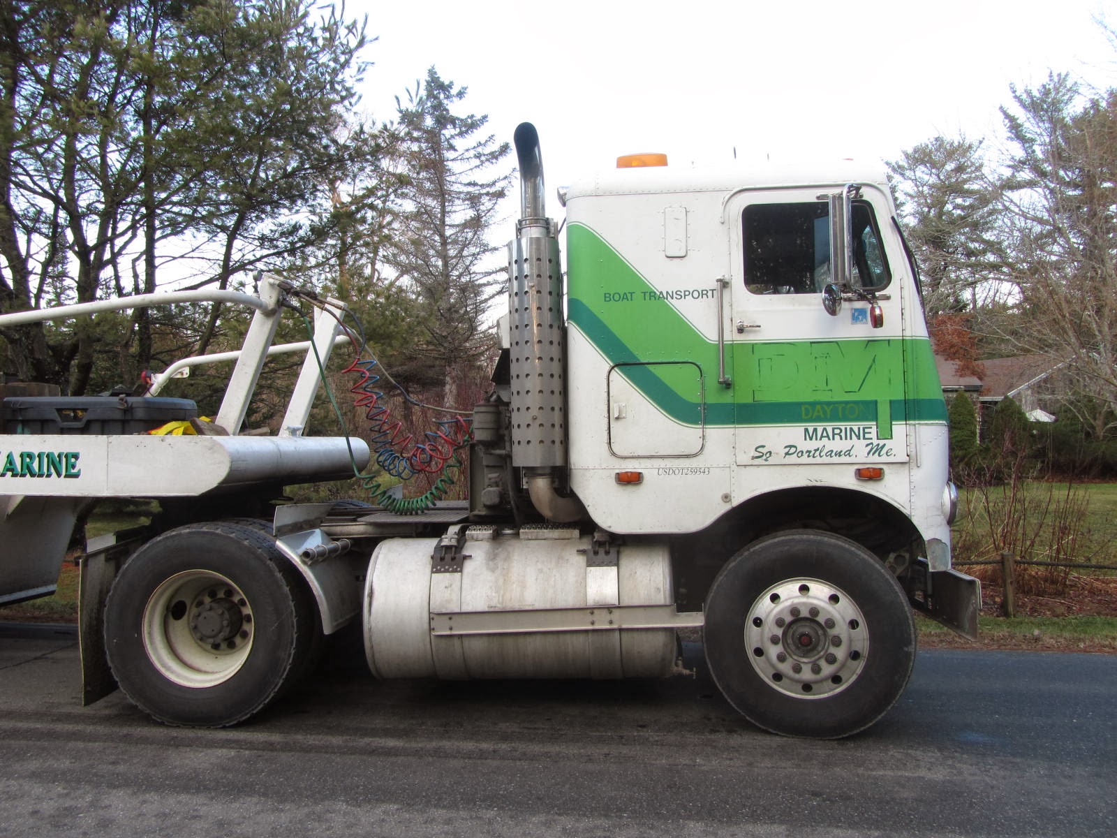 Still Hauling. Flying Point, Maine. c. 1975 White Freightliner