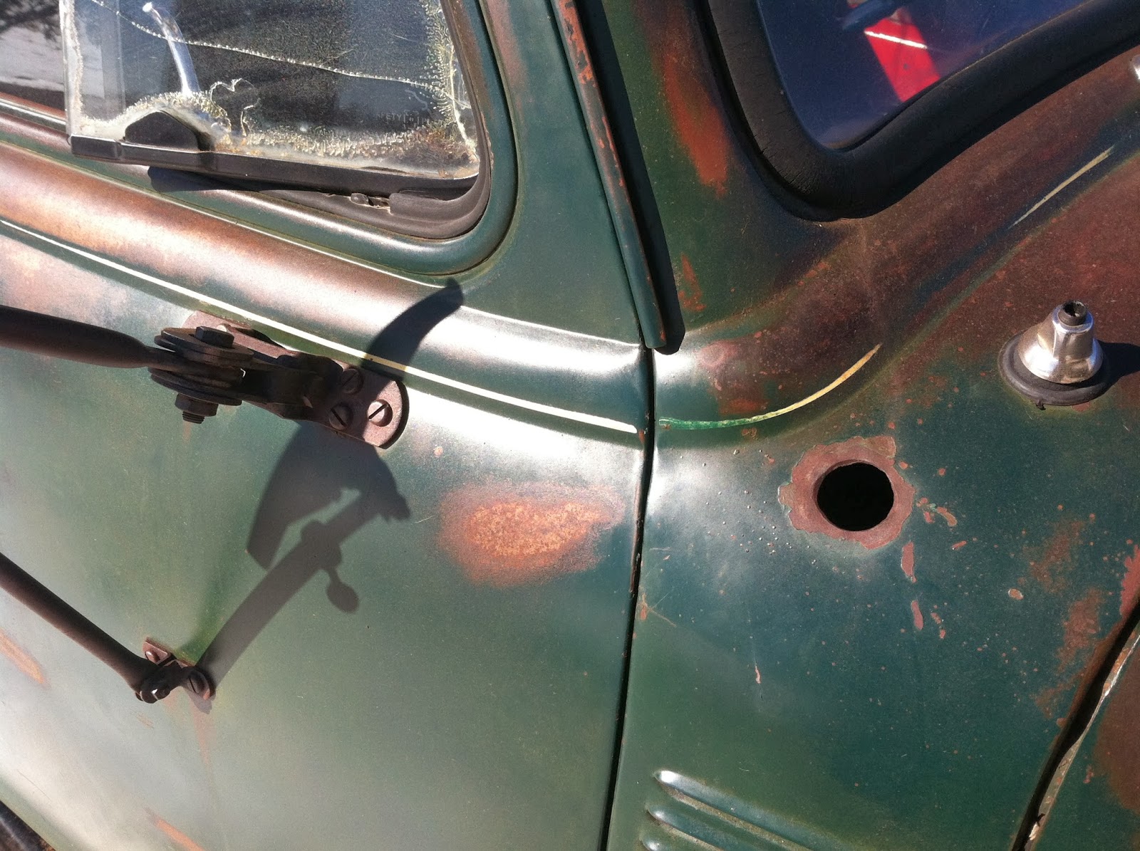 "I was up in New Mexico for Thanksgiving and this was hauled out of the garage for my benefit. Runs like a top. The owner has been painting the interior with red rustoleum and trying his damnedest to get the windlace run correctly in its channel. He said it was "an ugly, dusty green" before he wiped her down with 30wt. Wants to buff it out and "fix the dents". I might have preferred the barn-fresh patina but I admire his old-man-with-an-oilcan approach."