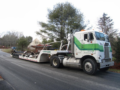 It is getting late in the season for hauling out. The boat looked handsome and so did the truck, though neither were speed machines, and both could probably use a little work. Have a look at this 1960s White truck at Bill Grant's Boatyard in Sedgwick, Maine. I'm thinking 6 months today, Scout goes in the water.