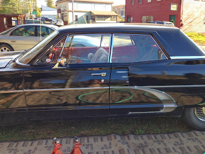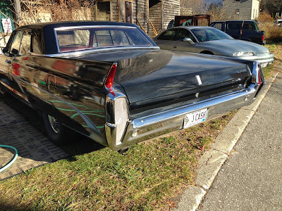 "This car is located in Mt Vernon, Maine at an old mill . The owner came out and spoke to me while I was taking pictures. He and his brother made the car up after Johnny Cash's song "One Piece at a Time." Based on a late 60's Mercury Monterey."