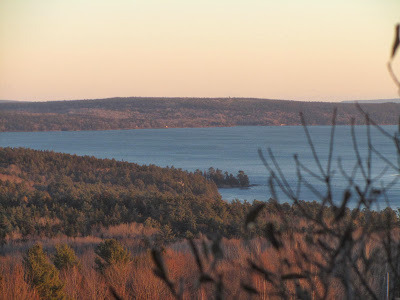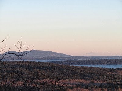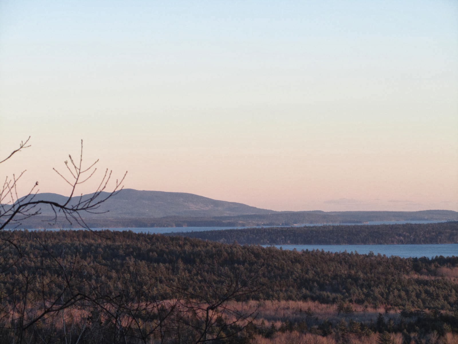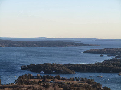 From the top of Blue Hill--known in these parts as Blue Hill Mountain. Views of Long Island and, across the bay, Mount Desert Island (Ils de Mont-Desert) and Acadia N.P.
